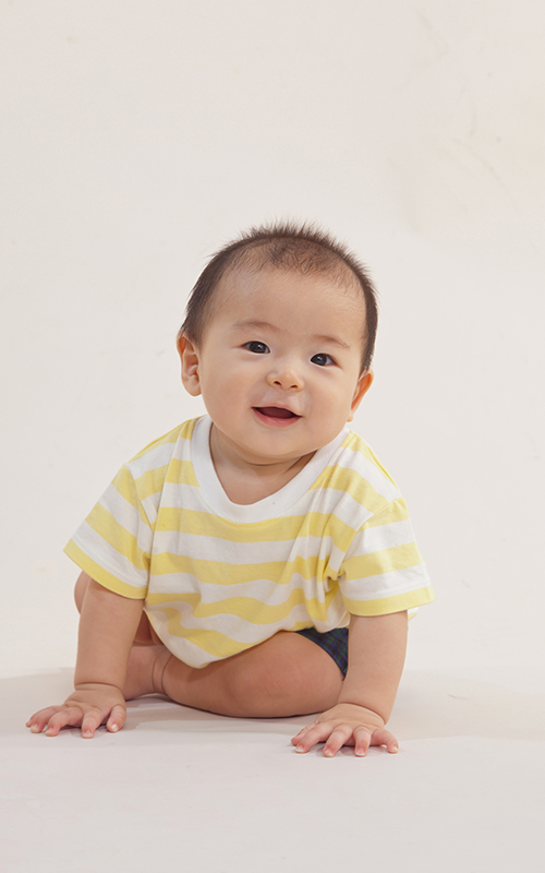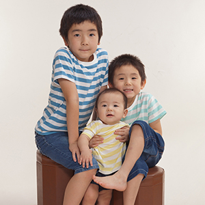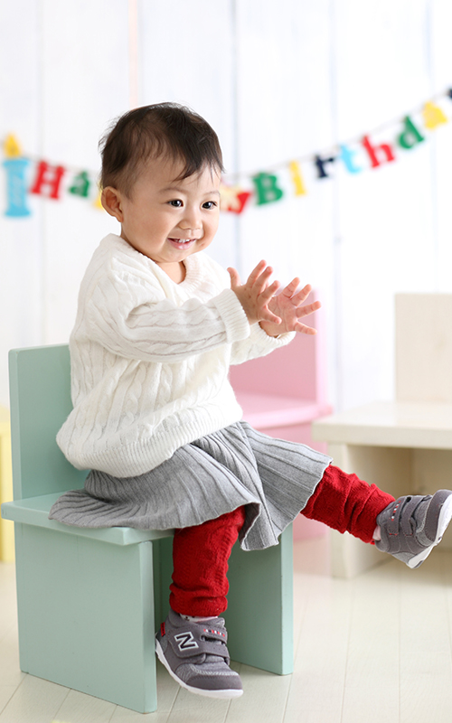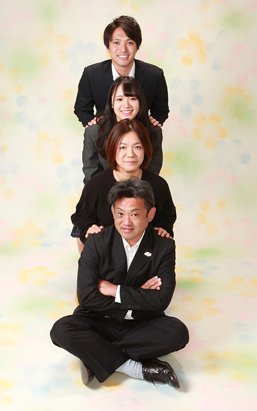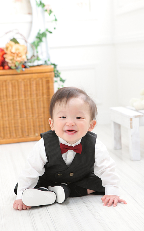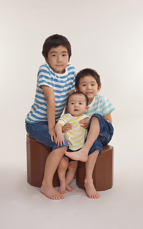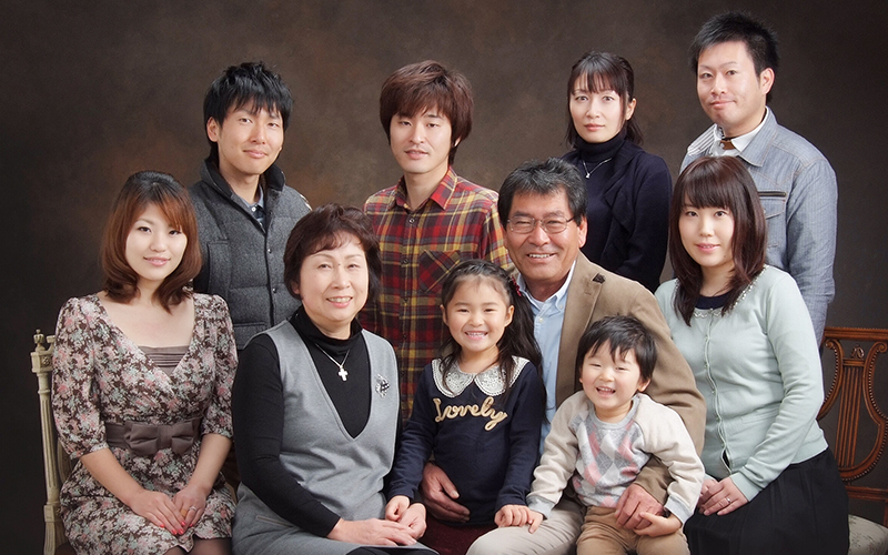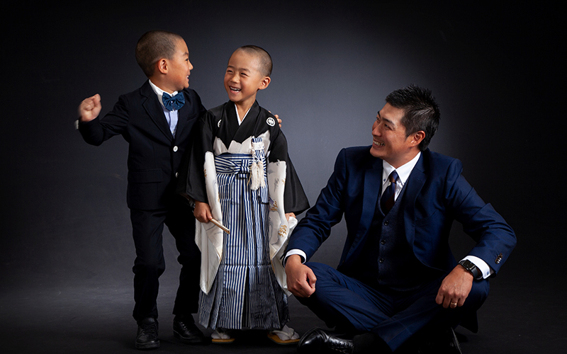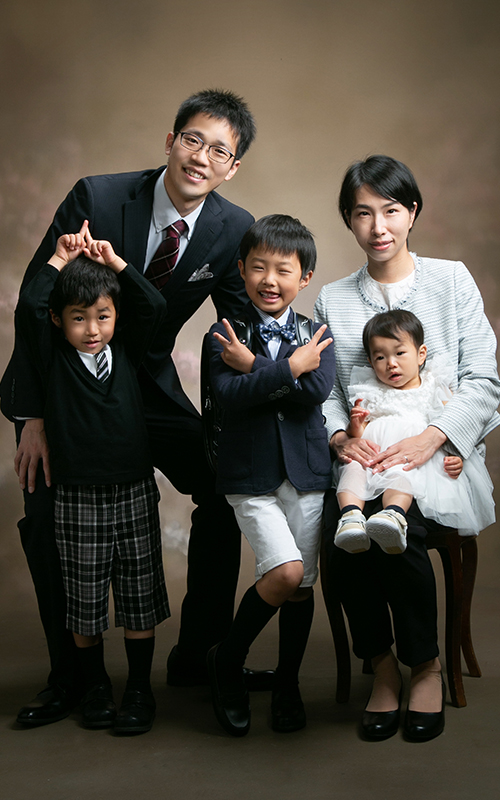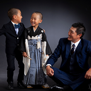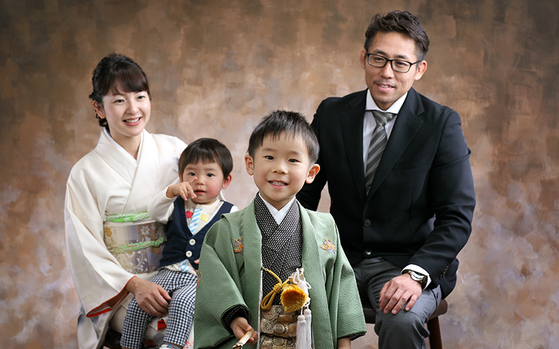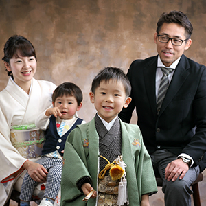 撮影スタイルはオーソドックスな昔ながらの家族写真をベースに、ご家族構成やご希望により壁面を使用してカジュアルな雰囲気の撮影もおすすめです。