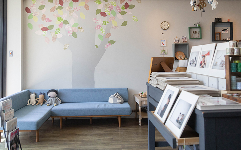 就活写真、婚活ポートレート写真、家族写真などを2Fスタジオで撮影します。